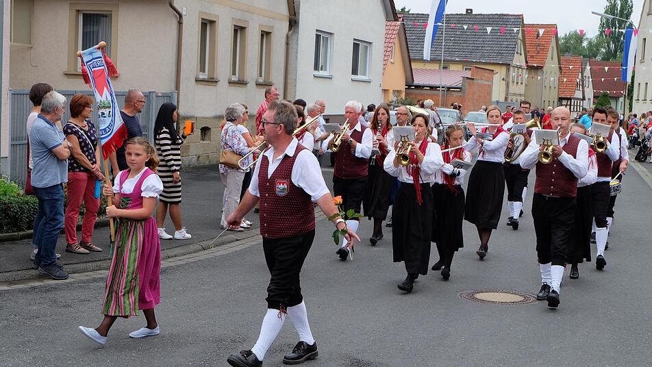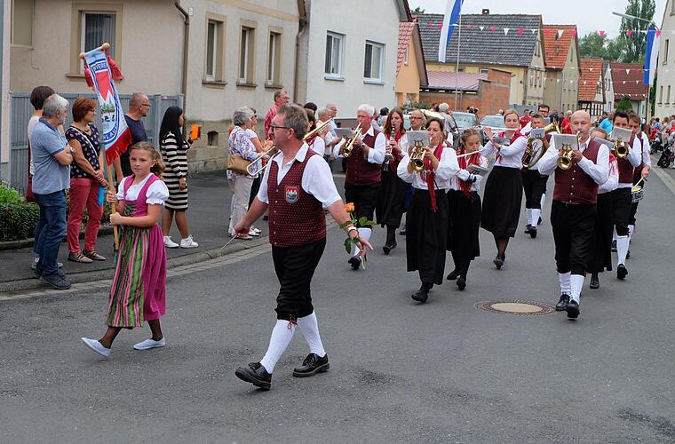 Ab 11.30 Uhr können die Gäste ihren Appetit beim Mittagessen stillen. Um 14 Uhr marschiert der Festzug mit den Gastkapellen und Gastvereinen durch die Straßen von Poppenlauer. Anschließend findet der Gemeinschaftschor aller Musiker am Festgelände statt.