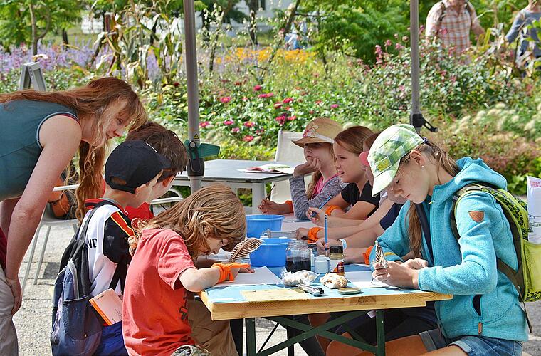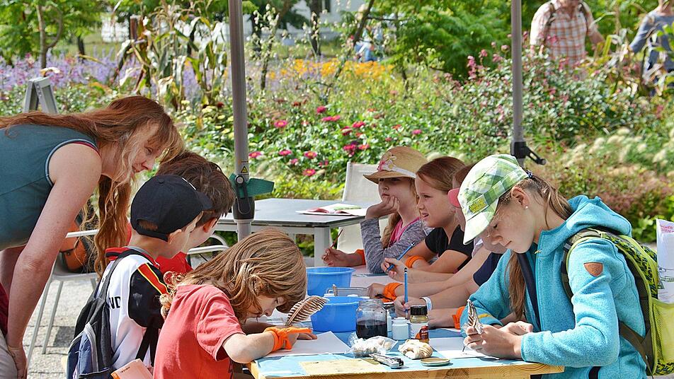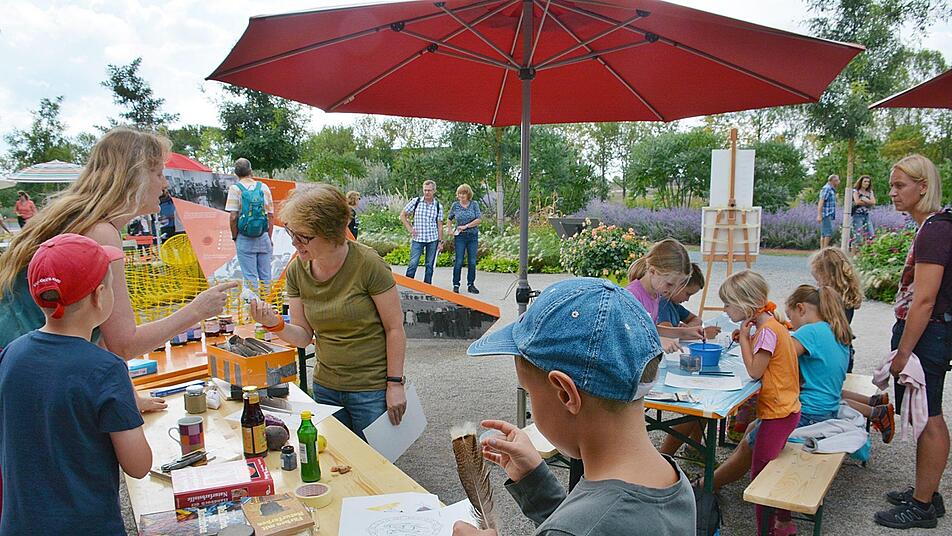 Denn, wo eine Musikgruppe aufspielt, da ist immer etwas los. So war es kein Wunder, dass der Stand des Kreisverbandes für Gartenbau und Landespflege Rhön-Grabfeld von Jung und Alt umlagert war. Während die einen der Prominentenband aus Bad Königshofen lauschten, waren die Kinder und Jugendliche begeistert, wenn sie mit einem Federkiel schreiben und malen durften. Andere ließen sich erklären, wie man in der Steinzeit Feuer oder Licht machte und was man so alles aus Tierknochen herstellen kann. Einer der beim Kurzbesuch am Dienstag übers ganze Gesicht strahlte war denn auch Kreisfachberater Georg Hansul. "Das war eine gute Idee, die Promiband und dann auch das Jukunet aus Bad Königshofen einzuladen." Damit war auch das Grabfeld bei der Landesgartenschau vertreten.