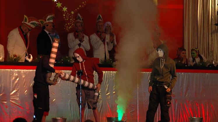 Bewährte Jecken und Neulinge bringen die Besucher in der Mehrzweckhallte zum Toben.