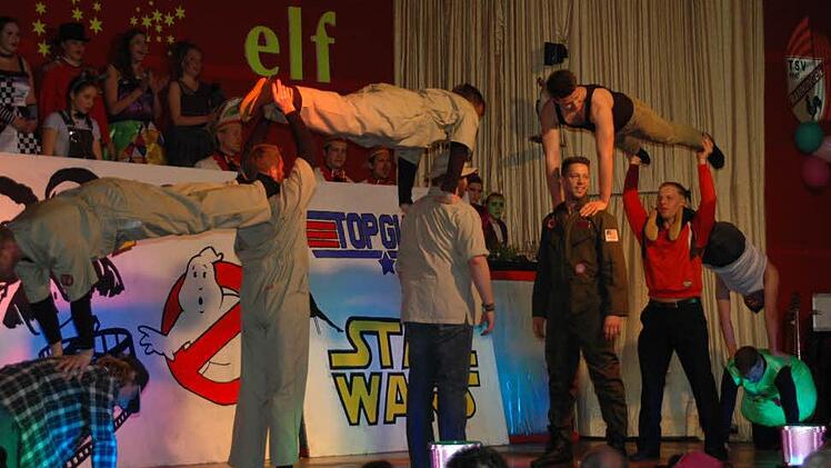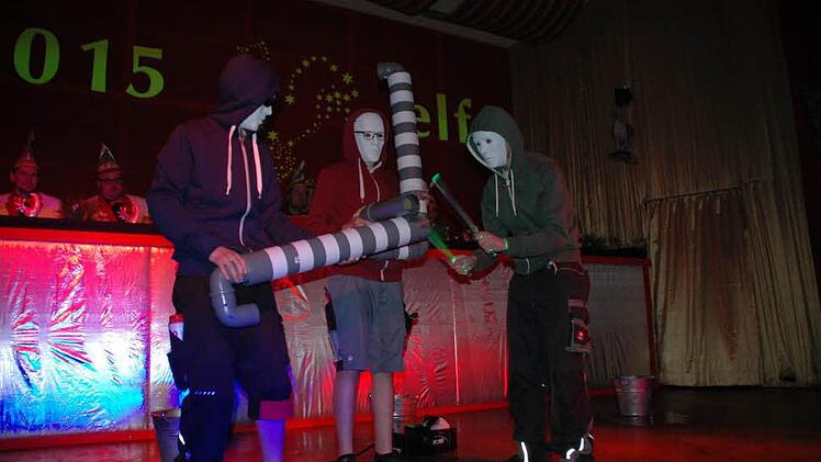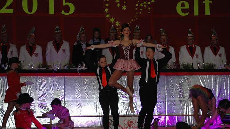 Die Schunkelrunden läutete Roland Kilian als Haus- und Hofmusikant ein. Sitzungspräsident Martin Erhard führte eloquent durch die Sitzung und war als Moderator nie um einen Spaß verlegen. Das Männerballett zeigte große Akrobatik bei den Filmhits der 80er Jahre. Wie immer gab es zum Ende die große Musikparade, bei der Carina Stöhr, Roland Keller Michael Kleinhenz, André Kilian, Dominik Hüllmantel, Matthias Leurer, Janina Ruopp und Elisabeth Wohlfahrt mit aktuellen Stimmungshits und bewährten Gassenhauern den Saal zum Toben brachten.