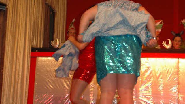 Mit Strip Bei den Sketchen können sich die Rannunger ebenfalls auf bewährtes Personal verlassen. Das Putzfrauen-Duo Karin Nöth und Hildegard Bretscher ist ein fester Bestandteil. Sie hatten sich in diesem Jahr dem Thema Online-Bekanntschaften verschrieben, Profile für die jeweils andere angelegt und am Ende sogar einen Strip hingelegt, der das Publikum zum Johlen brachte. Sketche ohne Worte sind die Spezialität von Richard Fleckstein. Mit seinen Partnern Andreas Diemer, Roland Keller, Mario Stefan und Katharina Spitzhirn gab es gleich zwei Darbietungen, bei denen Zauberei und Pantomime wesentliche Säulen sind. Die verblüffenden Elemente und das Mimikspiel sorgten auch diesmal für Staunen.