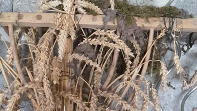 Richtig begeistert war Dorothee Hanshans aber auch, als sie bemerkte, wo genau das Nest gebaut war: in einem Rechen, der früher immer beim jährlichen Heimatspiel zum Einsatz kam. Er steht dort zur Zierde, selbst mit Getreidehalmen ist er noch geschmückt. Zwischen die Holzzinken haben die Vögel ihr Nest gebaut. Dorothee Hanshans ist gespannt, wenn die Piepmätze flügge werden. Zwischenzeitlich spitzen die ersten Köpfchen schon neugierig und munter aus dem Nest.