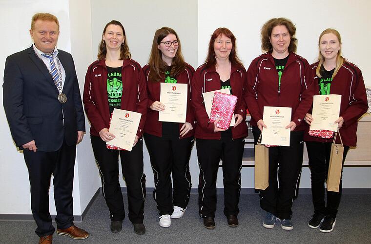 Erfolgreiche Fußballerinnen, Sportschützinnen und -schützen, Sportkeglerinnen und -kegler sowie Tennisspieler wurden für ihre Leistungen mit Ehrenurkunden und -nadeln in Bronze oder Silber belohnt.