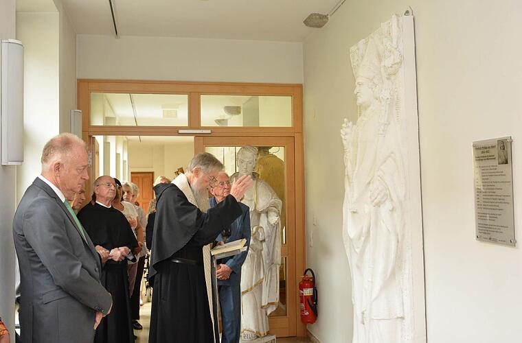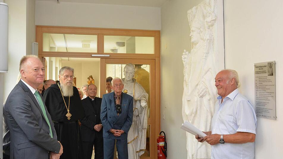 Die restaurierte Grabplatte des Bischofs Friedrich Philipp von Abert hat ein neues Domizil gefunden. Ab jetzt ist sie im Kreuzgang des Augustiner-Konvents St. Michael in Münnerstadt zu sehen, wo sie in einem feierlichen Akt geweiht wurde. "Schon fünf Jahre ist es her, da entdeckte der Kreisheimatpfleger Werner Eberth das Modell der Grabplatte des Bischofs Friedrich Philipp von Abert in der Stadtscheune", erklärte Sabine Scheuble vom Altstadtverein Münnerstadt.