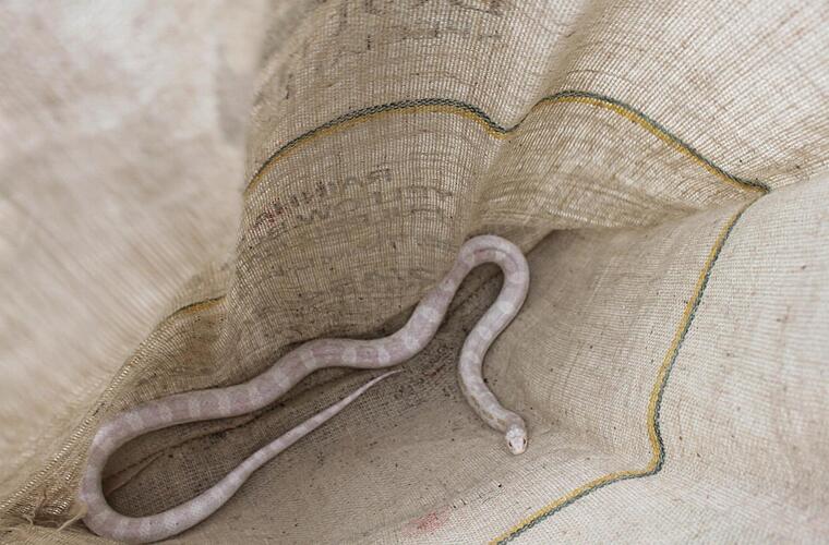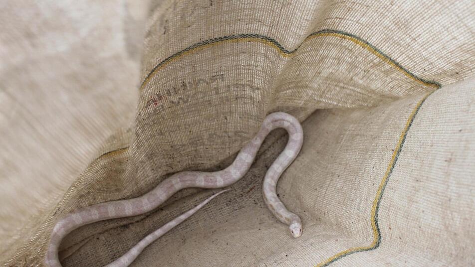 Die Polizei informierte nach ihrem Eintreffen das Tierheim und ließ das Reptil abholen. Es ist eine Snow-Kornnatter, eine Albino-Art dieser in Nord- und Mittelamerika heimischen kleinen Würgeschlange. Solche Einsätze sind auch für die Polizei sehr selten, erklärte Lothar Manger von der Polizeiinspektion Bad Kissingen auf Anfrage.