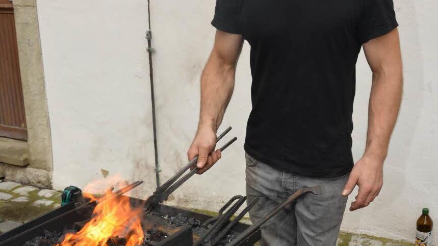 Auch ein Schmied arbeitet mit Gefühl. Das wurde bei der Drechsler-Ausstellung im Deutschordensschloss deutlich.