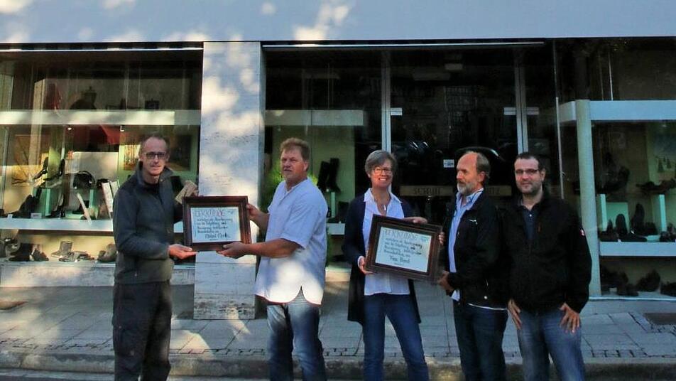 Michael Moritz meinte, die Fassade eines derartigen Hauses müsse man halt mindestens alle 30 Jahre neu herrichten. Und das hat er mit viel Liebe zum Detail getan. Er versprach, "die Urkunde bekommt einen schönen Platz in meinem Schuhladen".