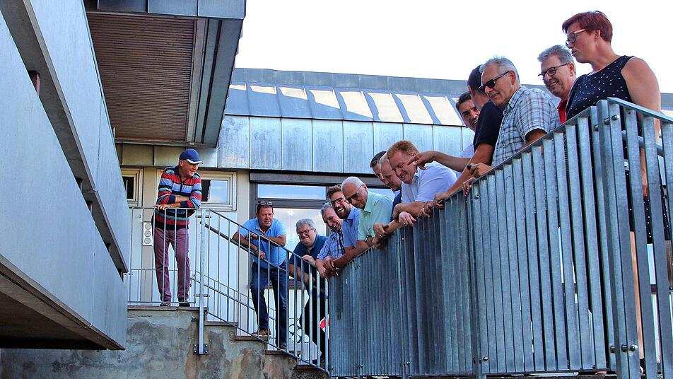 Vor Beginn der Sitzung im Rathaus traf sich der Marktgemeinderat am Verwaltungsbau der Mittelschule. Die Mitglieder überzeugten sich, dass die wenig einladende Außenanlage umgestaltet werden muss und genehmigten dafür 11 000 Euro Materialkosten. Die Arbeiten werden vom Bauhof ausgeführt.