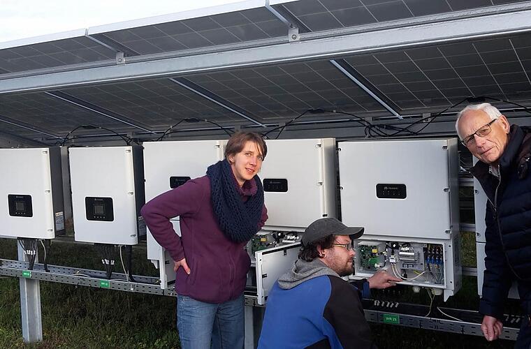 "Mit der Bauphase sind wir sehr zufrieden", stellt Günter Köth fest. Alles sei nach Plan gelaufen. In diesen Tagen fanden die letzten Arbeiten an der Anlage statt. So musste Elektriker Frank Gröbe die technischen Voraussetzungen schaffen, damit der Betrieb der Anlage online von der Energiegenossenschaft selbst, aber auch vom Wartungsbetrieb überwacht werden kann.