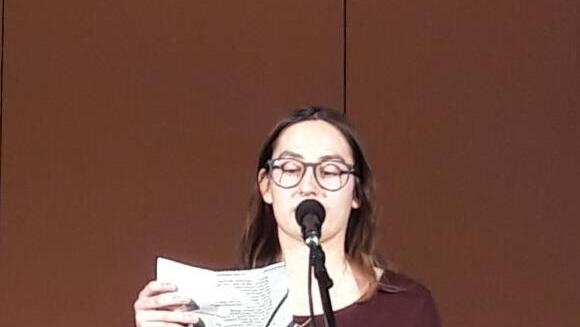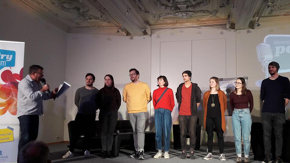 Die Reihenfolge für die Vorträge war vorher ausgelost worden, und damit der Wettstreit nicht kalt beginnt, gibt es ein sogenanntes Opferlamm, das Jury und Zuhörer einstimmen soll auf das, was schließlich später bewertet werden soll: Caro Wille kommt aus Mellrichstadt. Sie ist, wie alle anderen Teilnehmer und Teilnehmerinnen, mitten in der Poetry-Slam-Szene verwurzelt. "Wille und Weg" zu finden, um einen sympathischen Menschen mitten aus dem Alltag heraus auf seine Seite zu ziehen, ist ihr Thema. Dazu gehört Mut, um vermeintliche Ängste zu überwinden, sie wird sogar ins Englische übergleiten, um Erfolg zu haben. Am Ende reicht es für: "Do you want a Peppermint?"