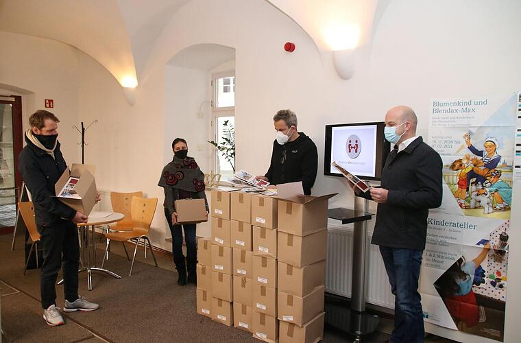 "'Kaufhaus' Mürscht und besonders Christine Schikora haben sich mächtig ins Zeug gelegt für die neuen Printprodukte der Stadt", sagt Kilian Düring, Kreativkraft für Stadtmarketing und Tourismus. Gerade sind 2000 druckfrische Imagebroschüren in die Touristeninformation im Deutschordensschloss geliefert worden, dazu jede Menge Flyer. Arno Reuscher, Vorsitzender von "Kaufhaus" Mürscht, Christine Schikora von GrafikDesign Schikora, Bürgermeister Michael Kastl (CSU) und Kilian Düring stellten sie bei einem Pressegespräch vor.