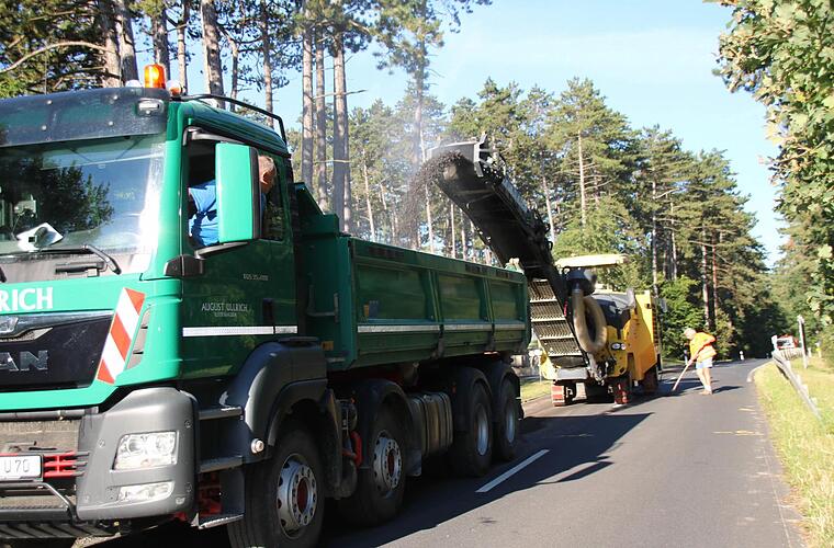 Der Landkreis Bad Kissingen nutzt die Ferien, um ein noch nicht saniertes Sstück der Kreisstraße KG 20 zwischen Münnerstadt und Burghausen zu verbessern.