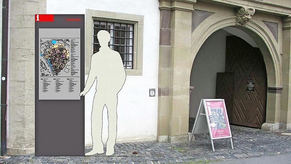Daneben gibt es noch schmale Hinweis-Stelen, die hauptsächlich mit Pfeilen und Piktogrammen die Wegrichtungen angeben und die Besucher weiterführen. Mit diesen Tafeln sollen die Besucher zu den 15 wichtigsten touristische Schwerpunkten gelenkt werden. Dazu gehören die Stadtpfarrkirche und das Deutschordensschloss, der Bildhäuser Hof und die Stadttore oder das Rathaus. An den jeweiligen Sehenswürdigkeiten werden kleine Tafeln mit Informationen zu den Gebäuden angebracht. Die sind modern gestaltet. Als Material soll eine Milchglasplatte gewählt werden. Am Standesamt im Deutschordensschloss hängt bereits eine solche Info-Tafel.