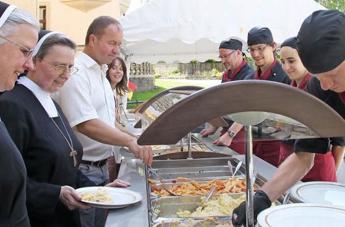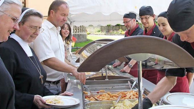 "Man hat gespürt, dass alle gespannt waren und sich gefreut haben", fand die Generaloberin des Ursberger Schwesternordens, Sr. Edith Schlachter. Der Orden ist Eigentümer der Klostergaststätte und hat für einen eher symbolischen Betrag die Gaststätte an die Werkstatt für Behinderte verpachtet. "Die Neubelebung des Gasthofes", zeigte sich Generaloberin Edith Schlachter überzeugt, "wird Maria Bildhausen guttun." Sr.