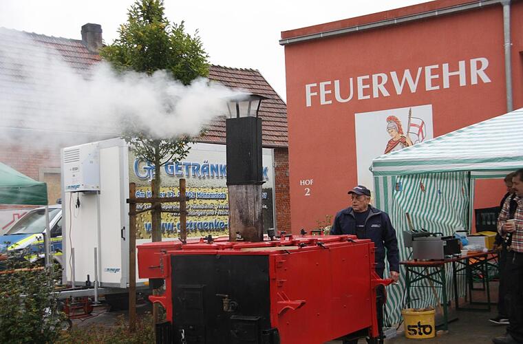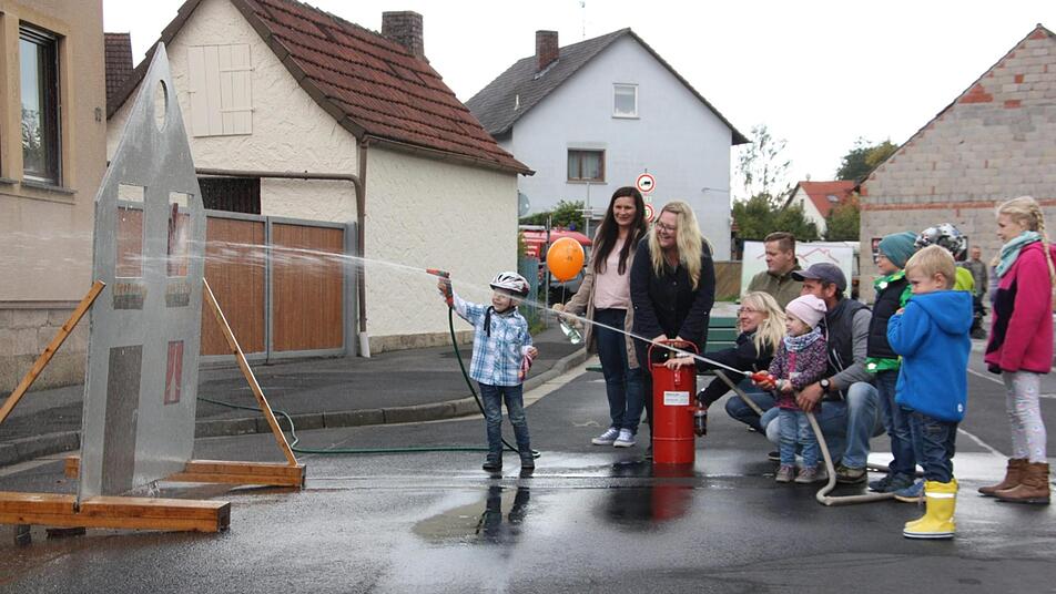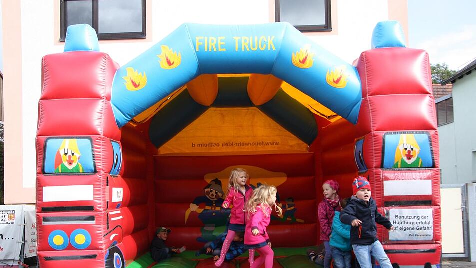 Zudem gab es für die Kinder eine Hüpfburg, das Spielmobil des Kreisjugendrings, ein Bastelzelt und einen Luftballonweitflug. An einer Kübelspritze konnten sie zudem erste Erfahrungen als Feuerwehrkind sammeln. Mit einem Informationsstand waren auch der Jugendverkehrserzieher der Polizei, PHM Matthias Kleren, und eine Firma für Feuerschutzbedarf vertreten. Auch für das leibliche Wohl der Besucher war in Form von Eintopf aus der Gulaschkanone sowie Kaffee und Kuchen bestens gesorgt.