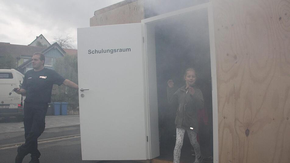 Anhand eines Rauchhauses wurde demonstriert, ab wann ein Rauchmelder auslöst und es wurde vermittelt, wie man sich im Ernstfall verhält. In diesem Zusammenhang konnten die großen und kleinen Besucher im Rauchhaus die Sichtverhältnisse in einem - in diesem Fall mit Kunstnebel - verrauchten Raum austesten.