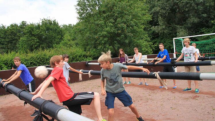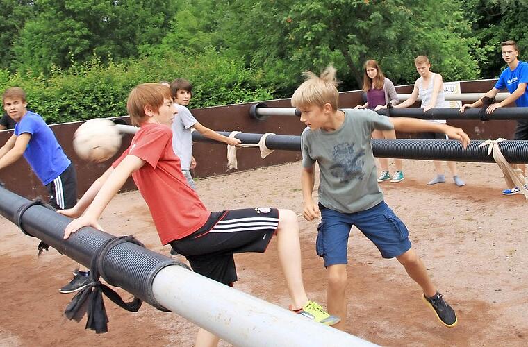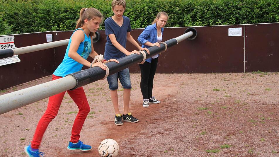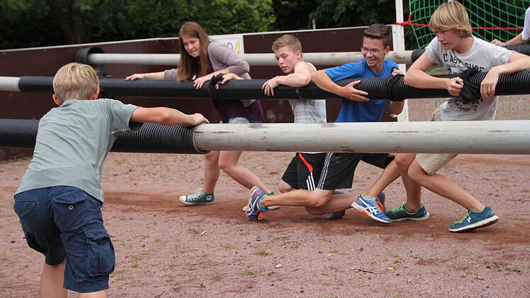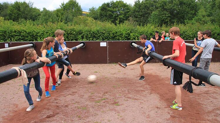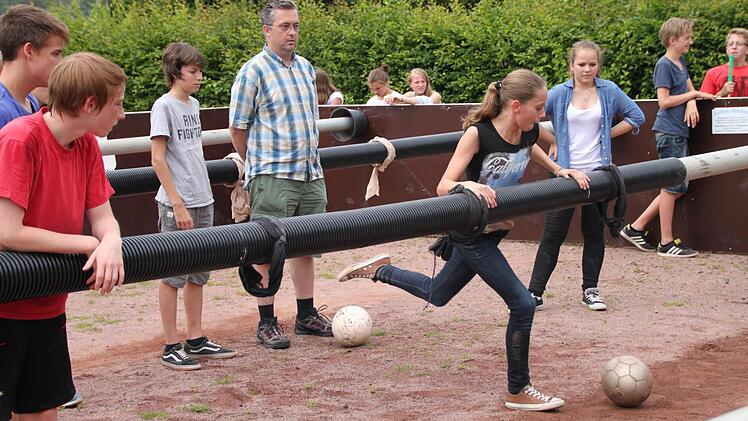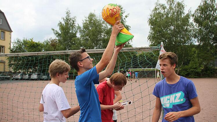 Die Ganztagsklassen am Münnerstädter Schönborn-Gymnasium haben während der Fußball-Weltmeisterschaft ihre eigene WM durchgezogen. Gespielt wurde Menschenkicker, was der Neuntklässler Jean-Luc Schmittutz auch total gut fand, weil die Teams aus den verschiedenen Jahrgängen hier gleichberechtigt waren. "Das Endspiel war echt hart", meinte Schmittutz, der mit seinen Klassenkollegen der 9c im Finale auf die 7d traf. Die 7d führte sogar bis kurz vor dem Ende mit 2:1, kassierte dann noch ein Tor und musste ins Elfmeterschießen, das die 9c gewann. Vor der WM waren die Patenländer der Klassen ausgelöst worden. Bei der 9c war es Portugal, bei der 7d die USA.