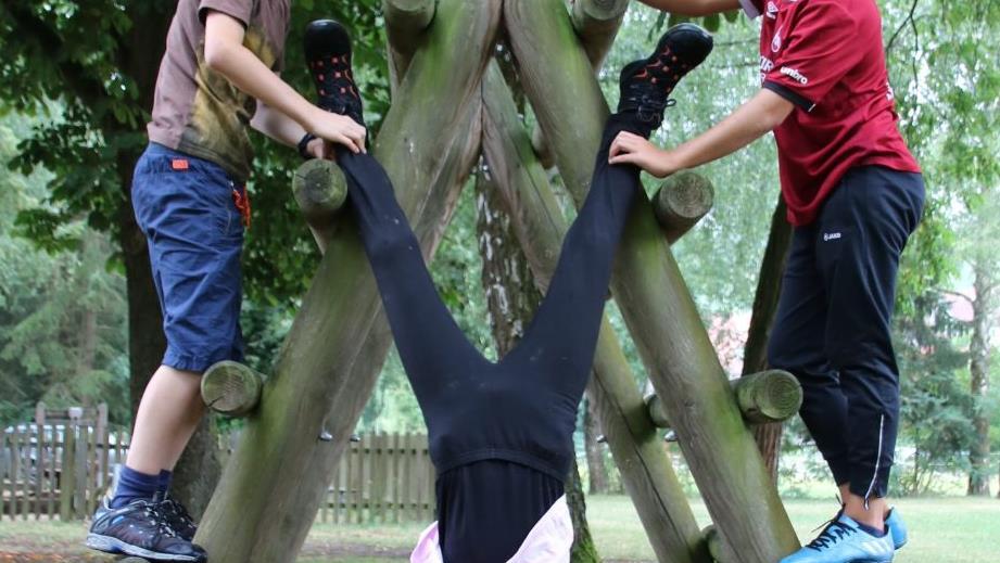 Die volle Punktzahl gibt es auch für die Sauberkeit: "Bei jeder Sitzgruppe steht ein Mülleimer", bemerkt Elisabeth. Keinerlei Abfälle lagen beim Test herum, der Rasen war gut gepflegt. Die Löcher in den Tornetzen ignorieren die Kinder auch deshalb, weil die auf vielen Spielplätzen zu finden sind. Dass bei den älteren Spielgeräten das Holz einen Belag hat, der leicht mal Kleider dreckig macht, stört die Kinder nicht. Im Gegenteil: Gerade an Klettergerüst, Reck-Stangen und dem ganz einfachen Balken zum Balancieren turnen sie besonders lange herum.