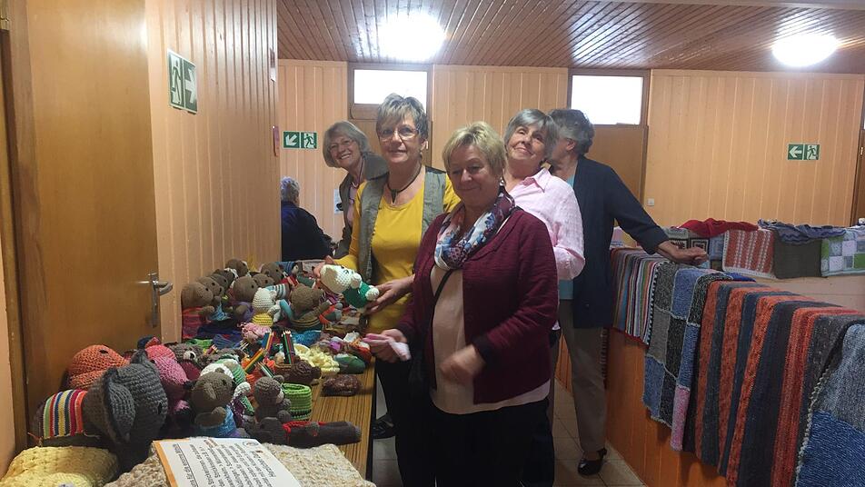 Zu einer Ausstellung der für die Rumänienaktion gefertigten Wollsachen lud die Kolpingsfamilie Münnerstadt die Bevölkerung und die Marktbesucher am Sonntagnachmittag ins Jugendzentrum ein. Mit Unterstützung von Strickkreisen aus Rottershausen, Schmalwasser und Windhausen gab es unendlich viele verschiedene Ausstellungsstücke zu bewundern. Theresia Kiesel und Traudl Laudensack, die Organisatorinnen der Kolping-Strickstube, hatten sie zahlenmäßig erfasst: 66 Kinderpullover, 15 Pullunder, 67 Jacken, 75 Schals, 178 Mützen, 23 Stirnbänder, 272 Paar Socken, 20 Hausschuhe, 45 Decken, 20 Häkeldeckchen, zehn Ponchos, 40 Strickpuppen und acht gehäkelte Elefanten.