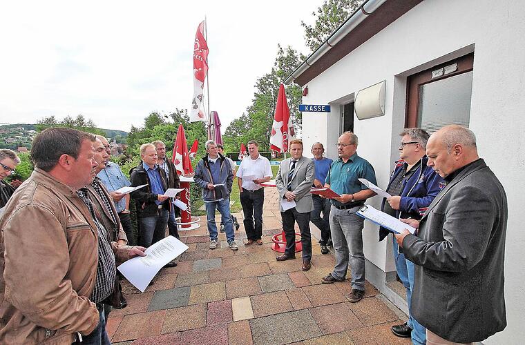 Im Außeneinsatz waren die Mitglieder des Marktgemeinderates vor ihrer Sitzung am Dienstag. Sie besichtigten das Baugebiet "Centleite" sowie die Mittelschule und das Freibad. Die Räte konnten sich davon überzeugen, dass die eigentlichen Schwimmbecken in Ordnung sind.