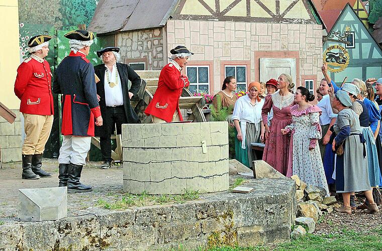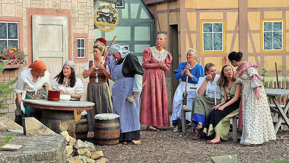 Auf der Freilichtbühne in Poppenlauer wird, wie schon im vorigen Jahr, das Stück "Der Weiberaufstand" gespielt. 40 Akteure von fünf bis 70 Jahren sorgten am Wochenende bei den Aufführungen für höchst vergnügliche Abende, am kommenden Wochenende gibt es nochmals zwei Aufführungen.