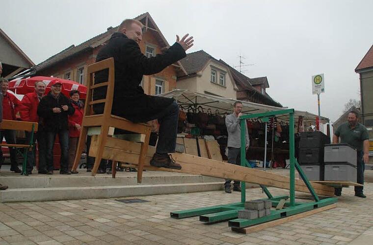 Ein ganz besonderes Spektakel hatten sich die Maßbacher zur Erheiterung am Marktsonntag ausgedacht: Der Bürgermeister wurde für einen guten Zweck in Fleisch aufgewogen.