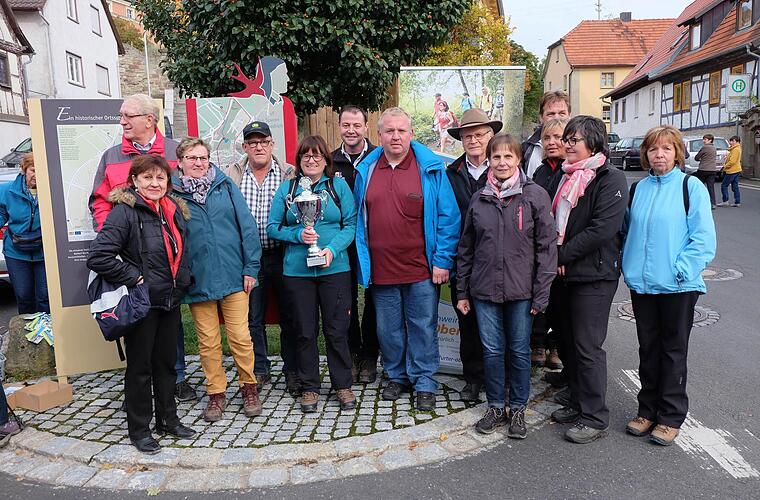 Dort überreichte Egon Klöffel, Allianzsprecher und Bürgermeister von Thundorf, den Wanderpokal des "Schweinfurter Oberlandes" an die mitgliederstärkste Wandergruppe aus Seubrigshausen/Thundorf mit 40 Teilnehmern.