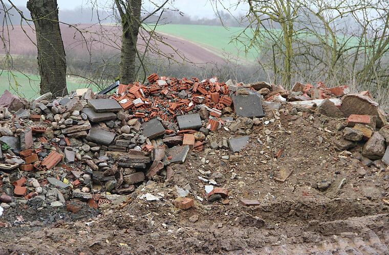 Rita Schmitt erklärt, dass der Bauschutt dort nur kurzfristig deponiert sei. Er sollte Stück für Stück nach Strahlungen zur Wiederverwertung gebracht werden, meint Schmitt. Neben dem aktuellen Bauschutt finden sich dort aber auch viel ältere Ablagerungen samt Reifen, Grabstein, Dacheindeckung und Mist, alles auf städtischem Grund, wie Helmut Blank und Klaus Schebler betonen. Ihrer Meinung nach handelt es sich um eine wilde, illegale Müll-Ansammlung.