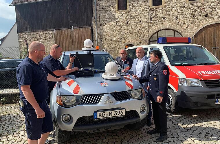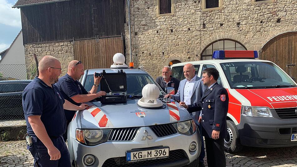 "Die Idee, solche Warnanlagen anzuschaffen, ist nach einem Wasserrohrbruch entstanden", sagt Bürgermeister Michael Kastl. Vor einiger Zeit hatte es nahe Kleinwenkheim einen Schaden an einer Wasserleitung gegeben, wodurch Großwenkheim von der Wasserversorgung abgeschnitten war. Die ganze Zeit seien Feuerwehrleute im Einsatz gewesen, um die Bürger über den Ausfall zu informieren und darüber, wo sie Trinkwasser beziehen können. Bei einem Katastrophenfall beispielsweise werden die Feuerwehrmänner und -frauen aber an wichtigerer Stelle gebraucht, so der Rathauschef. Die mobilen Warnanlagen können auch beispielsweise auf städtische Fahrzeuge montiert werden, was das Team sofort am Dienstwagen von Bauhofleiter Stefan Sluzar ausprobierte. Ein Test zeigte, dass die Warnanlagen wirklich gut zu hören sind.