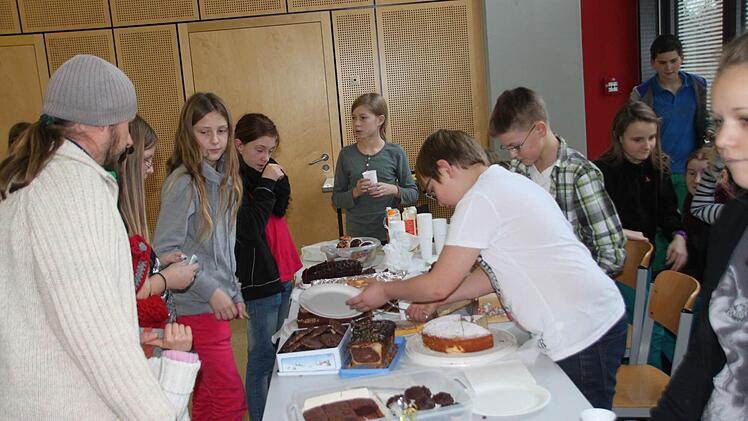 Er selbst steht an der Kuchentheke und verkauft mit seinen Klassenkameraden Selbstgebackenes. Auch seine Mitschülerinnen Hanna Werner und Ivo Stojiljkovic finden, dass es eine gute Aktion ist.