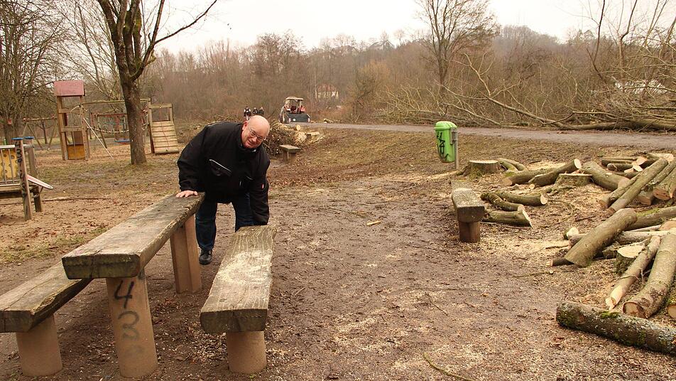 "Der Park bleibt nicht so", versichert der geschäftsleitende Beamte der Stadt Münnerstadt, Stefan Bierdimpfl. Er erklärt, dass die Anlage hergerichtet wird, wenn die Holzarbeiten beendet sind. Da eingeschlagene Holz wird derzeit bereits von privaten Holzmachern zu Brennholz aufgearbeitet.
