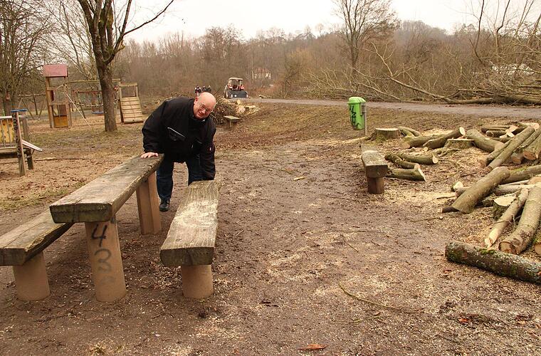 Die zweite große Abholzaktion entlang des Münnerstädter Hochwasserdeiches hat viel Licht in den Münnerstädter Jörgentorpark gebracht. Dadurch kommen die Schattenseiten des dortigen Spielgeländes deutlich zum Vorschein. Der Boden ist momentan zwar gefroren, doch bei Tauwetter wird sich der Spielplatz in eine große matschige Fläche verwandeln. Durch die Fäll- und Aufräumarbeiten wurde der Boden zusätzlich in Mitleidenschaft gezogen. Auch bei der Ausstattung sei noch Luft nach oben, stellt der Jugend- und Umweltreferent des Stadtrates Klaus Schebler fest.