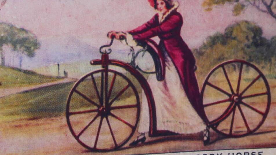 Hochräder waren tabu Der Vorbehalte gab es viele. "Radfahren gehörte sich einfach nicht für eine Frau", erzählt Buchmann. Die ersten Vorläufer des Fahrrades, so genannte Laufmaschinen, hatten noch Holz-Räder, die mit Eisen beschlagen waren. Schwer waren die und wegen der Stabilität als Herrenräder entworfen - obgleich es in Großbritannien auch Modelle für Frauen gab. Später folgte das Hochrad. Es liegt auf der Hand, dass Frauen mit ihren weiten Röcken sich nicht in die Höhe schwingen durften, auch wenn sich freilich nicht alle dar an hielten.