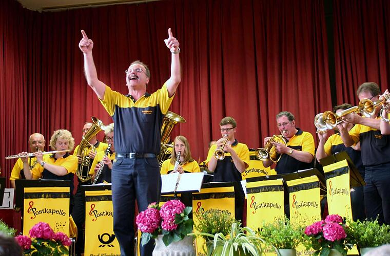 Klängen zusammenführt, hört und sieht man, wie genau der Dirigent die Klänge und die Gesten des Königs der Egerländer Musik studiert hat. Die Postler können auch einfühlsam, wie beim Tangomedley, fetzig wie bei der Postkutschenpolka, die Matthes als Postillon dirigiert, oder klassisch beim Erzherzog-Albrecht-Marsch. "Stimmung ist der beste Lohn für einen Musikanten", meinte Matthes.