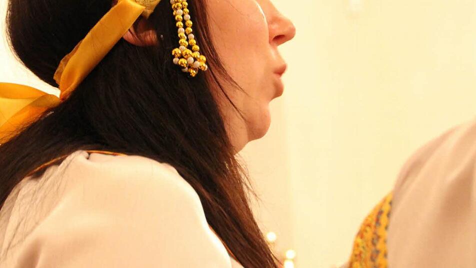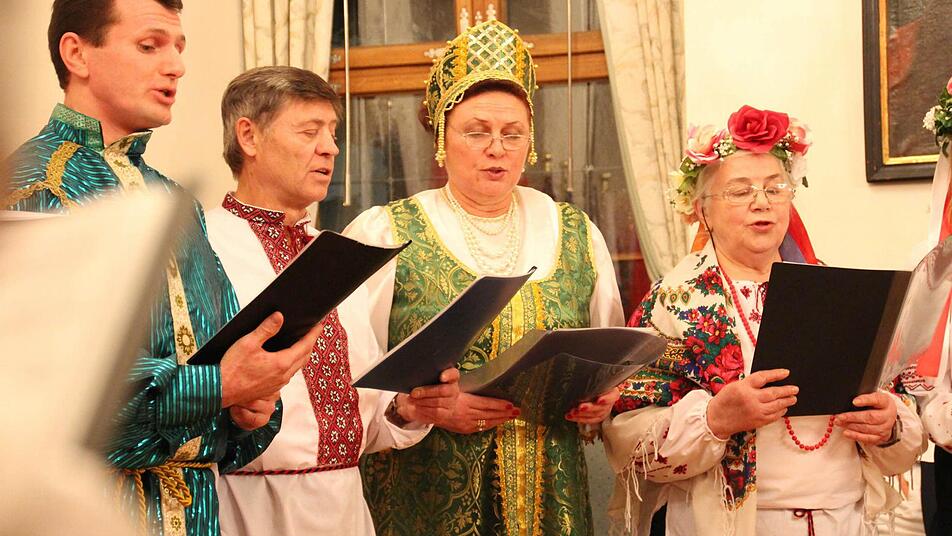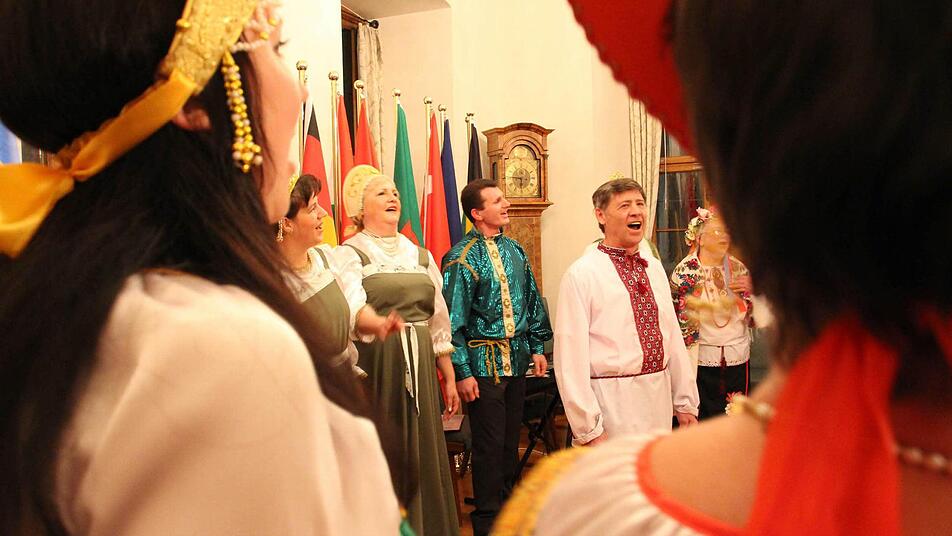 "Heimat, liebe Heimat, wie bist du so schön!" Gut ein Dutzend Frauen und Männer besingen im Chor ihre Verbundenheit mit dem Frankenland. Doch die Sänger treten im Sitzungssaal des Rathauses nicht in fränkischer Tracht, sondern mit bunten, bestickten Gewändern auf. Der Singkreis Slawjanka besteht aus Menschen mit verschiedenen Nationalitäten, die sich integriert und in Bad Kissingen eine zweite Heimat gefunden haben.