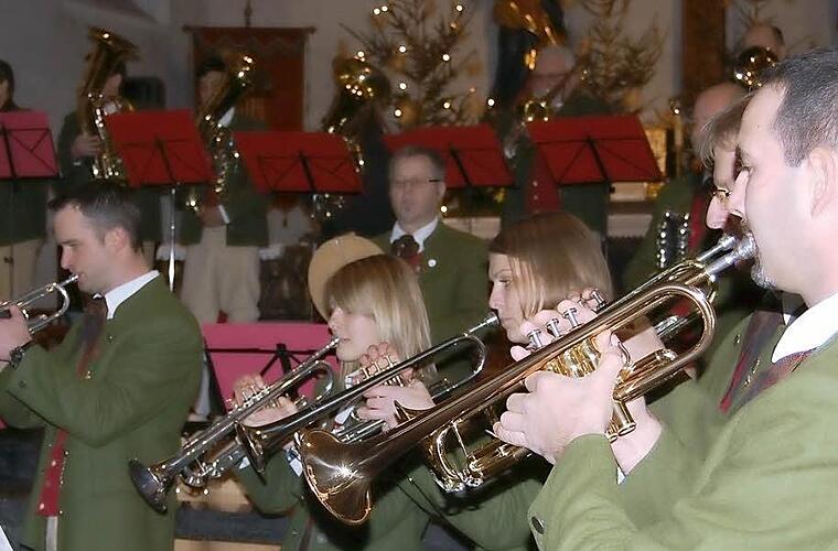 Zum Auftakt spielten die Bläser die "Midnight Serenade" von Johan Nijs. Es folgte ein Weihnachtslieder-Medley, bei dem insbesondere Trommler Stefan Söder sein Können zeigte. Ein Stück zum Aufrichten in schweren Zeiten ist "You Raise me up" von Secret Garden. Sogar geschichtliche Bedeutung erlangte "Jingle Bells", das 1966 als erstes Lied aus dem Weltraum zur Erde kam. Bei "What a Wonderful World" schließlich traten die Nachwuchsmusiker Emma Metz und Michael Herrlein als Solisten auf.