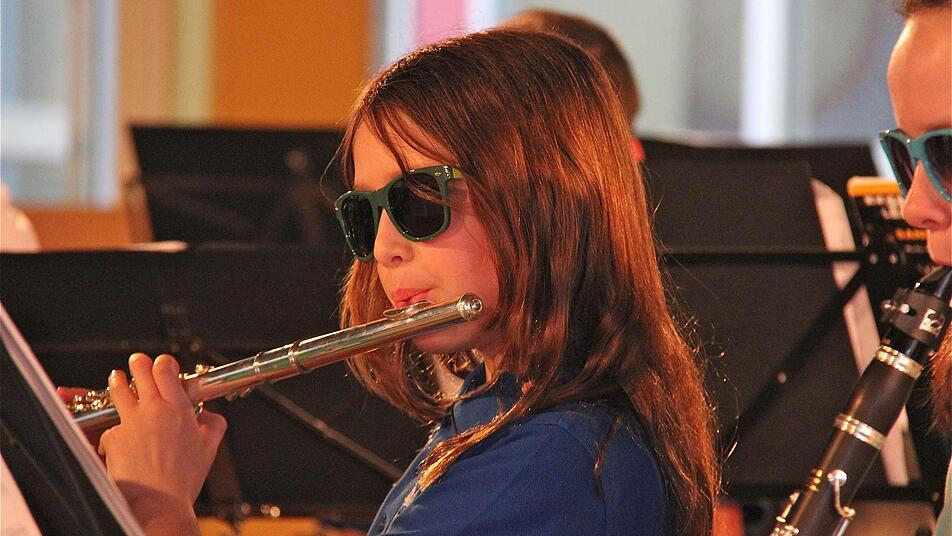 Dass die Stadtkapelle Zukunft hat, zeigt die nachwachsende Musikantengeneration. Unter der Leitung von Andrea Wagenpfahl eröffnet die Bläserklasse mit vier Musikstücken den Konzertabend. Mit der Sonnenbrille auf der Nase verstärken die jungen Musikanten optisch das Urlaubsgefühl, das beim Titel "Jus´ Plain Blues" entstehen kann.