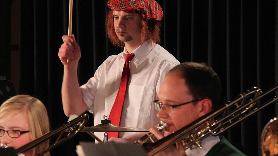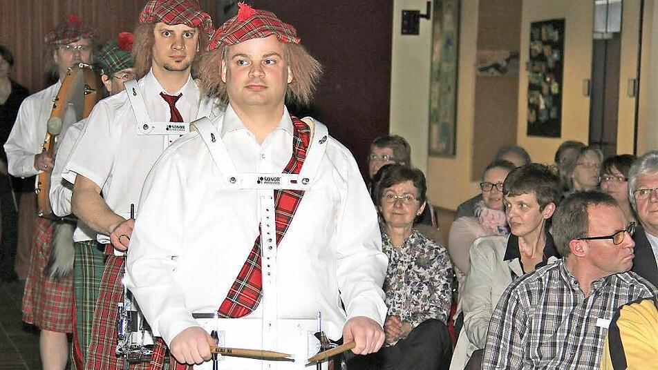 "Highlands & Royal Guards", so ist das Konzert der Stammkapelle überschrieben. Die rund 150 Zuhörer staunen nicht schlecht, als die Schlagzeuger und Paukisten in schottischer Tracht kommen.