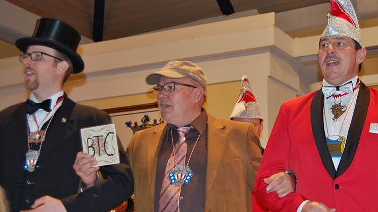 Doch die Bürgermeister Anton Schick und Thomas Leiner freuten sich zu früh: Nach dem Öffnen der Kasse stellte sich doch heraus, dass nur Spielgeld und viele goldene "Blankies" darin waren, die Fidelia-Vorstand Matthias Bühner gleich mit vollen Händen unters Volk warf.