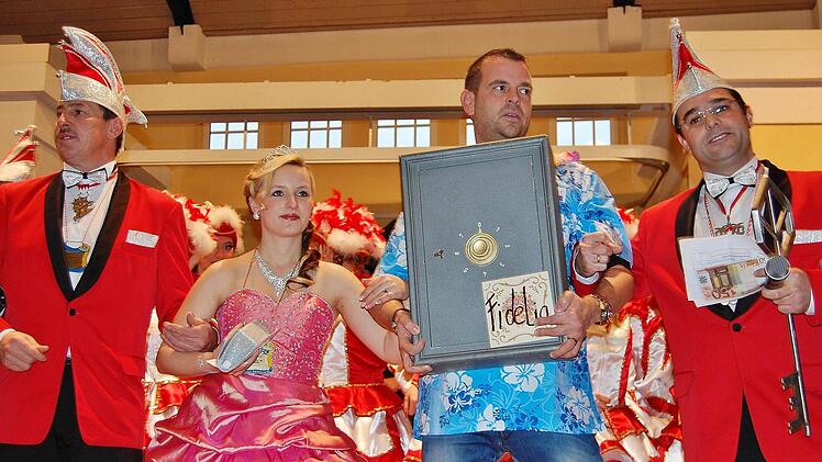 die beiden Faschingsclubs die Stadtkasse und den Rathausschlüssel wieder herausrücken, die sie beim Rathaussturm am 11. November den Bürgermeistern entrissen hatten. Die Clubs hätten während der Faschingszeit wesentlich wirtschaftlicher gearbeitet als der Stadtrat, meinte Fidelia-Vorstand Alexander Pusch. Deshalb könne man eine gut gefüllte Stadtkasse zurückgeben.