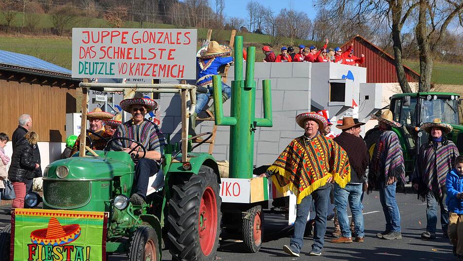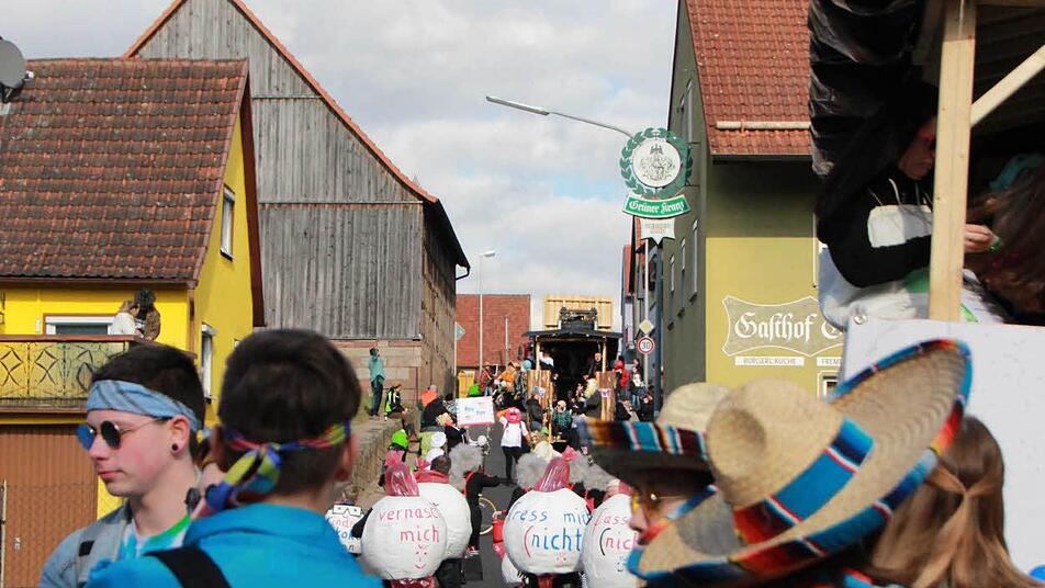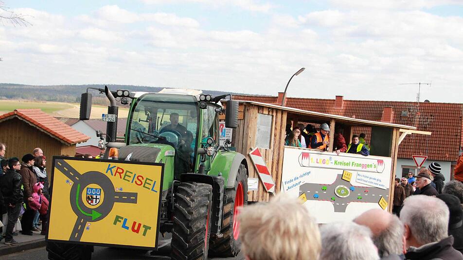 "Wo´s früher gerade ging, weißt heute nicht mehr wohin", witzelten die Nüdlinger beim Umzug in Stangenroth auf ihrem Wagen über den sogenannten "Lego-Kreisel" bei Großenbrach. Die Stralsbacher pointierten die Abwasser-Problematik mit Katzenbach: "Wir wollen eure Scheiße nicht, sonst ist bald der Kanal von Stralsbach dicht!" Burkardroths Bürgermeister Waldemar Bug wurde als "Baron" auf einem anderen Motivwagen per Kanonenkugel in den Himmel geschossen. Tanz- und Fußgruppen in aufwendigen Kostümen und Musikgruppen sorgten für Faschingsstimmung in den Straßen von Stangenroth.
