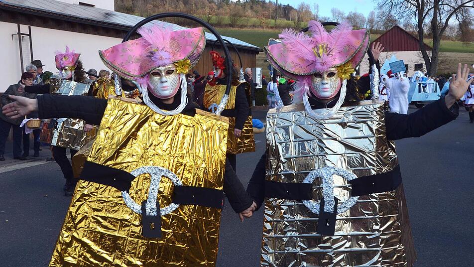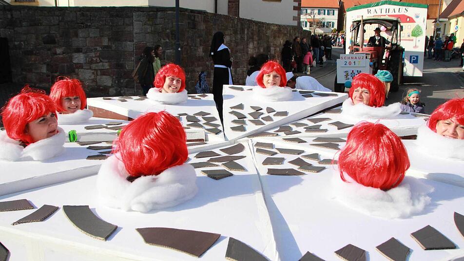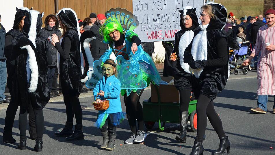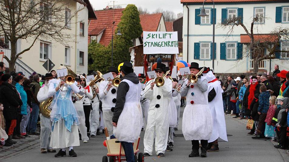 Närrische Fußgruppen und aufwendige Motivwagen haben sich am Rosenmontag bei frühlingshaftem Wetter durch Waldfenster und Stangenroth geschlängelt.