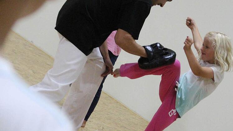 gut, wenn man weiß, wie man reagiert", sagt Yvonne Kessler aus Stangenroth. Sie hat ihren neunjährigen Sohn und ihre zwölfjährige Tochter zu dem Kurs geschickt. Noina Volpert aus Fuchsstadt ist mit ihrer sechsjährigen Tochter Alena und deren Freundin Emilia gekommen: "Ich lege Wert darauf, dass sie wissen, wie sie sich wehren können, wenn es darauf ankommt." Ihrem Mann, der als Kriminalbeamter arbeitet, ist das besonders wichtig.
