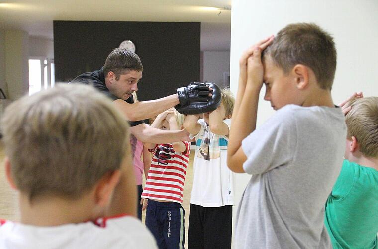 Dort haben die beiden "SDC-Master" die Sportschule eingerichtet. Verschiedenen Altersklassen bieten sie verschiedene Trainingseinheiten. Eingeteilt in die Gruppen Minis, Kids, Teens und Erwachsene. Kinder zwischen sechs und elf Jahren sollen lernen, sicher aufzutreten und sicher zu stehen. Jugendliche in der Altersgruppe darüber können schon mehr einstecken, meint Christian Schickmayr. Mit ihnen arbeitet das Ehepaar an der Deckung und simuliert schon mal einen Überfall.