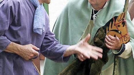 Hans Sachs vor großer Kulisse Das "Ritanswieser Burgtheater" hat eine große Fangemeinde, und so war zu Beginn des Theaters um 15 Uhr der Rathausgarten wieder gut gefüllt. So wirken die Stücke des Schuhmacher poeten Hans Sachs aus Nürnberg authentisch: Mitten unter den Leuten gespielt, der Bauernbackstubenwagen, sonst beim Rakoczyfest im Einsatz, wird zur Spielfläche, die Fachwerkrückwand des Rathauses ist stimmungsvolle, natürliche Kulisse. Da wird ein alter Bildstock als Wegweiser zum "Paradies", und ein Steckenpferd gibt den mittelalterlichen Gaul.