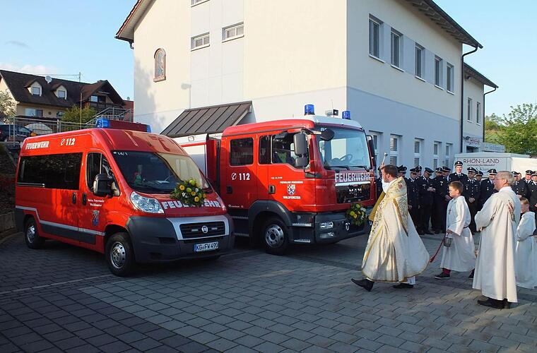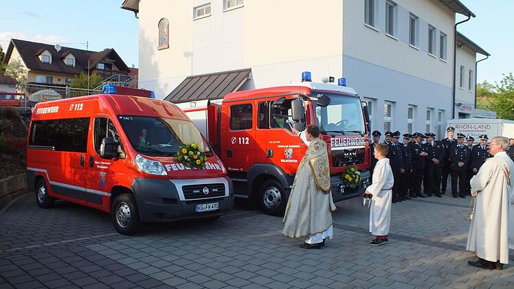 Dass der Florianstag des Marktes Burkardroth in Waldfenster stattfand, hatte einen Grund: Pfarrvikar Tobias Fuchs weihte dort zwei neue Fahrzeuge. "Eigenlich war ja nur der Kauf eines Löschfahrzeugs LF 10/6 vorgesehen", sagte der Feuerwehrvorsitzende Roland Schlereth. "Aber nachdem der Mannschaftstransportwagen im August 2011 das Zeitliche segnete, musste Ersatz her." Die Gemeinde sei im Zugzwang gewesen. Da sie sich aber sehr für das Feuerwehrwesen einsetzt, gab es keine Diskussion: Es wurden zwei neue Fahrzeuge angeschafft.