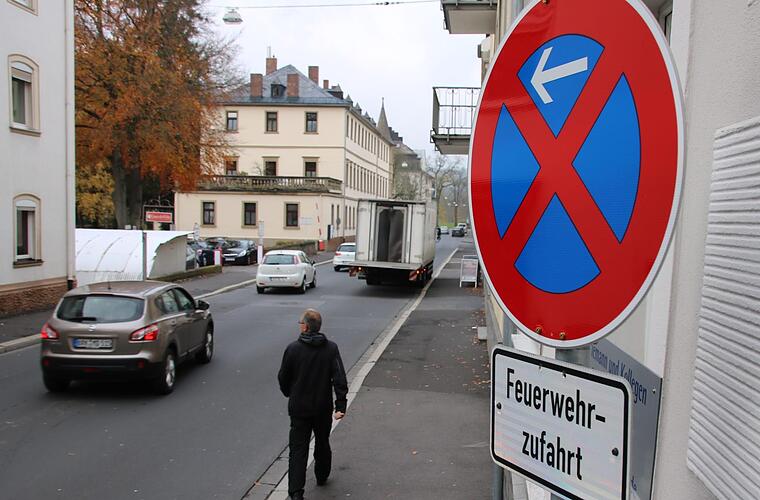 Die Feuerwehrzufahrt in der Theresienstraße wurde wegen des Umbaus der "Casa da Vito" in der Balthasar-Neumann-Promenade 8 notwendig: "Dort sind neue Wohnungen und Ferienwohnungen entstanden und der zweite Fluchtweg muss über die Drehleiter sicher gestellt werden", berichtet Stadtbrandinspektor Harald Albert. Dazu muss das Drehleiter-Fahrzeug rückwärts in den Hinterhof fahren können. Das gehe nur, wenn keine Autos gegenüber der Einfahrt von der Theresienstraße her parken.