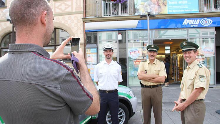 Polizisten aus dem Landkreis testen für die nächsten acht Monate eine neue Uniform. Der erste Eindruck der Fußgänger reicht von "schick" bis "Straßenbahnkontrolleur".
