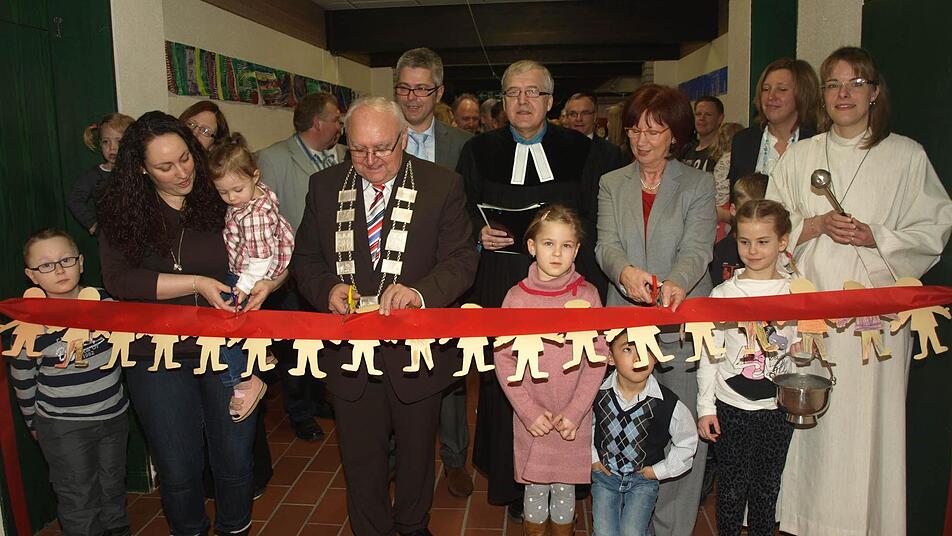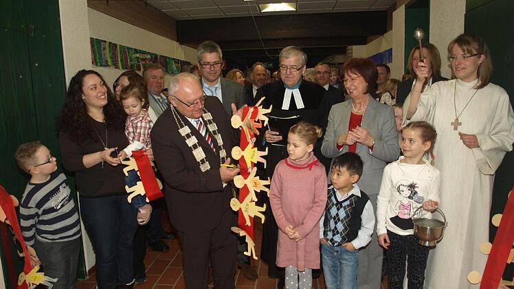 Umrahmt von Liedern gaben Pfarrer Philipp Klein und Gemeindereferentin Barbara Voll dem Bau den kirchlichen Segen. "Lasset die Kinder zu mir kommen", griffen beide auf und verwiesen auf das Vertrauen, das Kinder von Geburt an ihren Eltern entgegenbringen das jeder Mensch in Gott finde. Nach Fürbitten und Vater Unser durchschnitten die Ehrengäste das Band zwischen Alt- und Neubereich. Bei Rundgängen konnten sich alle einen Eindruck von den neuen Räume machen.