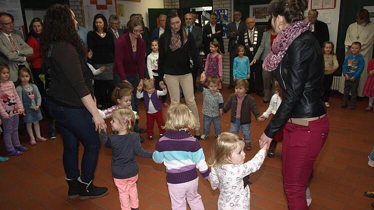 "Wir feiern heut´ ein Fest." Das Lied der Kindergartenkinder drückte die große Freude bei der Einweihung der Kinderkrippe in Oerlenbach aus. "Wir haben den Anbau aus erster Reihe verfolgt und beobachtet, wie Bagger anrückten und Bauteile per Kran durch die Luft segelten", blickte Kindergartenleiterin Birgit Frosch auf die Bauphase zurück. Jetzt warten "wunderbar gestaltete und eingerichtete Räume".